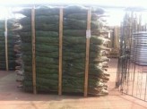 Bis zur kurzem erfogte die Beladung ausschließlich von Hand und lose auf den LKW. Heute werden die meisten Bäume mit Hilfe von Laderampen oder Förderbändern erst auf Großpaletten gepackt und dann auf das Fahrzeug gestellt. Bis zu 11 Paletten kann ein Sattelzug laden. Das sind dann je nach Größe der Bäume zwischen 1.000 bis 1.500 Stück